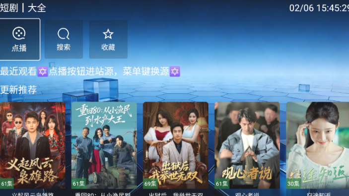 1、各种类型的短剧回放:涵盖各种主题的短剧,支持大屏幕高清流媒体,以及适用于电视/盒子等设备的自适应解码功能。