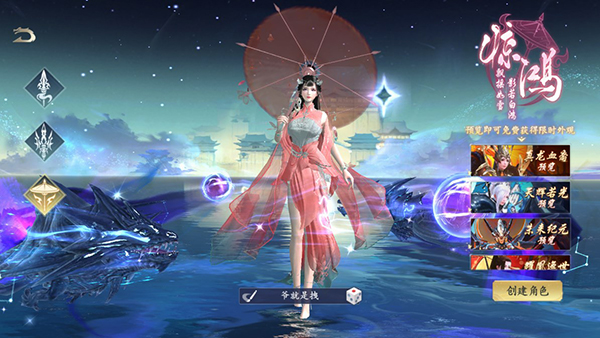 1、游戏内有着游龙、龙女、惊鸿三大职业可以选择,每种职业都有独特的技能和培养方向,玩家可以选择自己喜欢的职业进入游戏。
