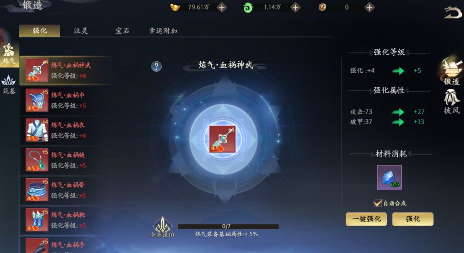 通过锻造强化装备来提升装备的属性,另外还可对装备注灵,对战力的提升也不容小觑。