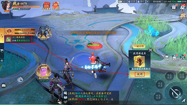 3、游戏以主线玩法为主,玩家可以点击主线任务进行完成,在完成主线的过程中会获得各种装备道具,玩家点击即可使用。