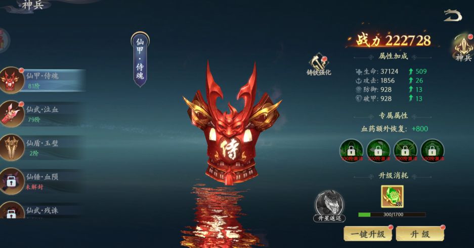 达到对应条件就可以解封神兵了,神兵可升级进阶,还可以铸铁强化,提升属性。