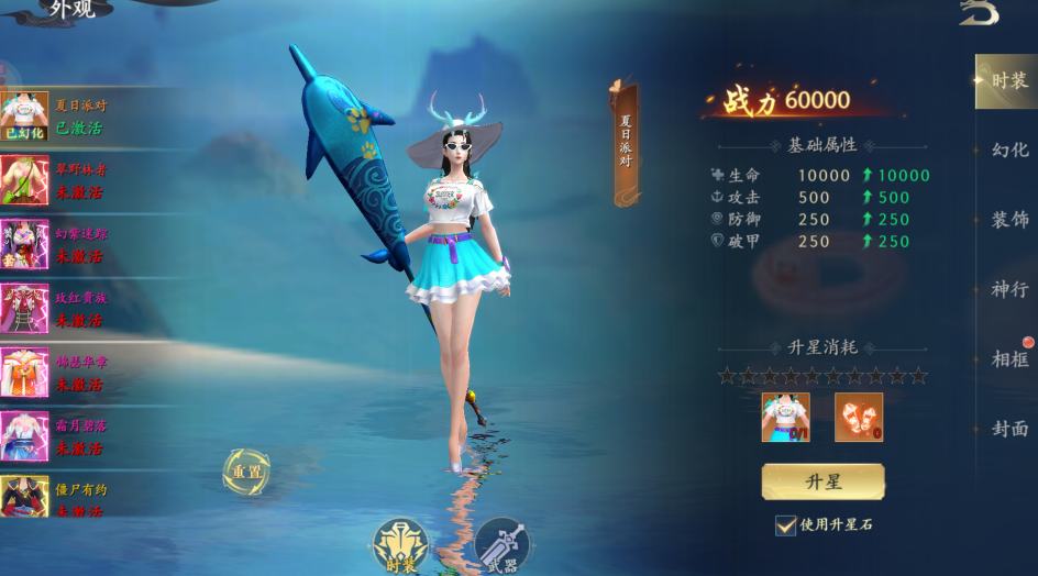对于角色的时装、幻化、装饰、神行和相框等,都可以激活升星,提升战力和属性。