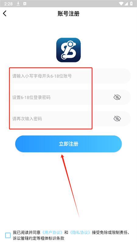 3、然后输入账号,设置好密码,点击立即注册即可。