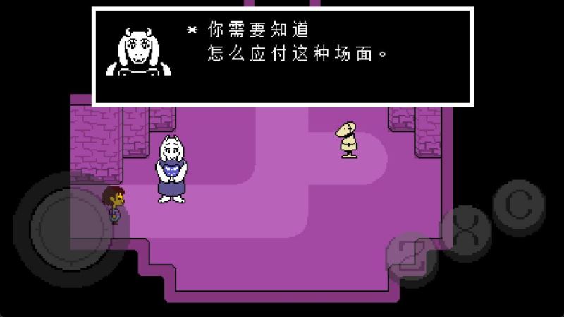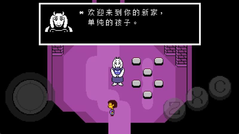 5、进入到第一个存档点北面的房间,Toriel会亲自把这个房间的谜题给解决,所以直接穿过北面的门即可。