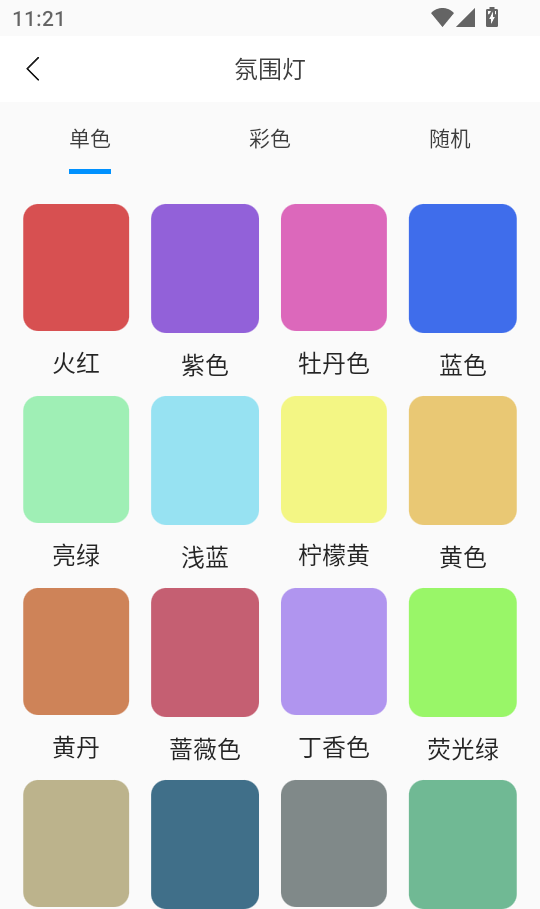 5、这样,您可以在“氛围灯”界面中选择您最喜欢的颜色,然后单击“颜色”继续下一步。