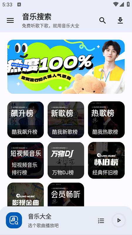 免费音乐大全是一款全新的免费音乐播放软件,拥有个性化的音乐播放界面设计,允许用户轻松调整音质,播放源等设置,随时随地在线听歌,还提供全面的音乐分类,及时获取最新且受欢迎的音乐资源,自由享受优质的音乐播放乐趣,还具有全新的音乐社区,允许用户自由交流并分享各种音乐歌单,方便用户轻松管理喜欢的音乐歌曲,能完全满足所有音乐需求,还支持下载缓存功能,可以及时下载各种热门音乐来听歌。