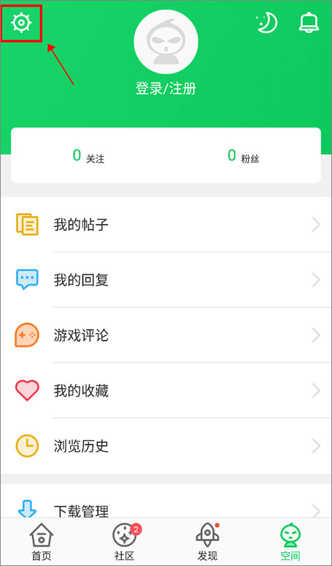 1、打开葫芦侠3楼,点击右下角的“空间”,然后点击右上角的设置按钮。
