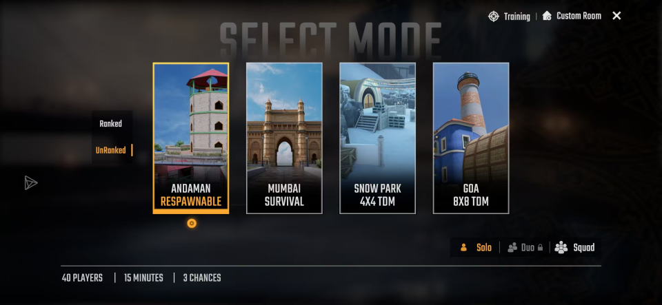 2、生存模式(孟买地图)100 人同场竞技,没有复活机会,挑战极限。