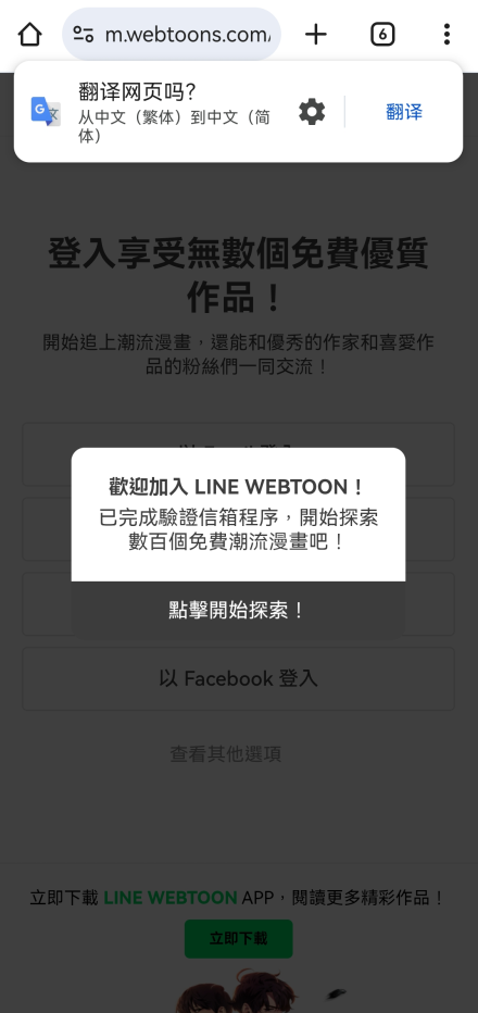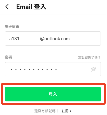7、返回到Webtoon软件进行登录,输入邮箱和密码,点击【登入】。