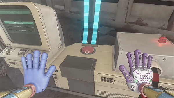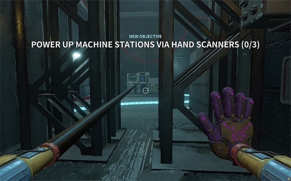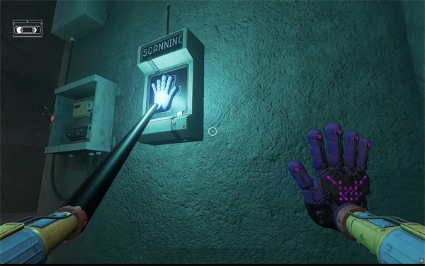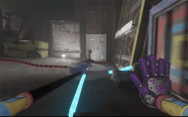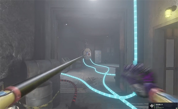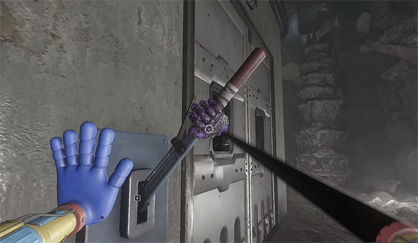 6、开门之后走里面还会有一个开关给他拉下来,往前走进去用蓝色手臂互动一下前面的开关,这里要触发三个开关才能有电流打通出口。