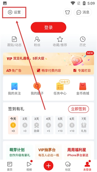 2、进入个人中心页面后,点击左上角的“设置”选项,进入设置界面。