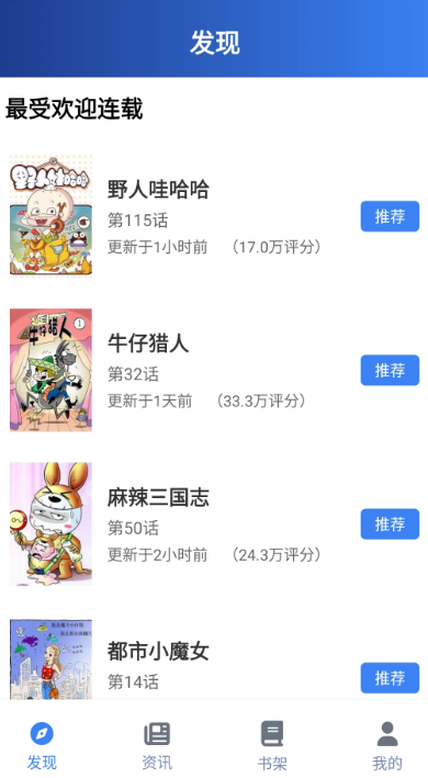 4、进入主页可以查看推荐的漫画。
