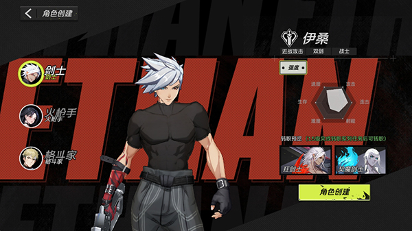 剑士有两个转职方向:狂战士和魔剑士,前者拥有招牌大招,召唤黑暗狂气覆盖自身,在一定时间内大幅提高攻速,并切换至双刀形态。