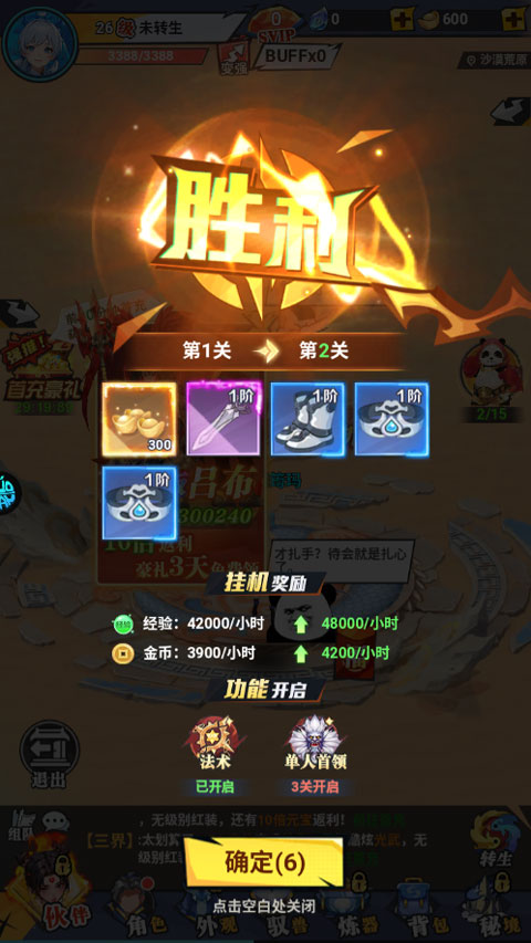 2、首次上线就送各种奖励。