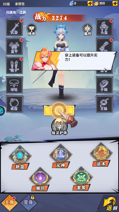 3、给角色搭配各种装备,提升实力。