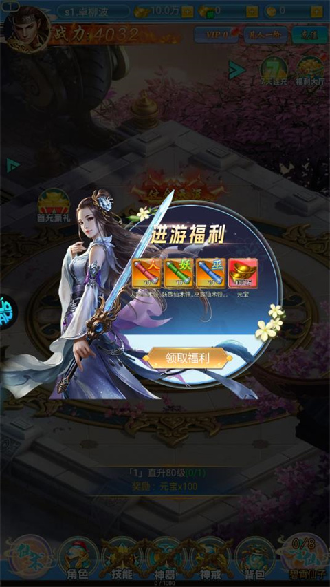 1、创角即送元宝*100000、人族技能卷*10、巫族技能卷*10、妖族技能卷*10。