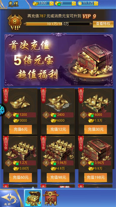 5、全场0.1折充值优惠,以极低的价格享受到顶级的游戏资源和道具。