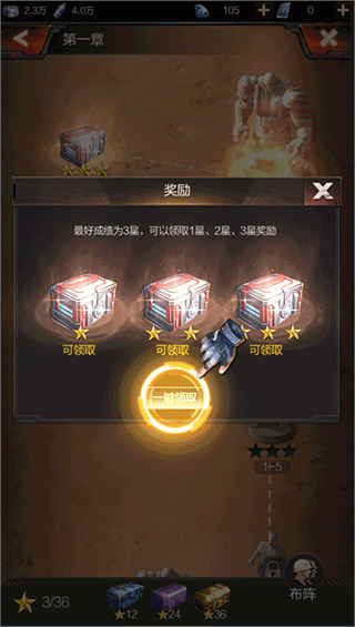 4、看清楚提示后可以点击“迎击”来挑战此关卡,重玩的话会出现布阵的按钮。