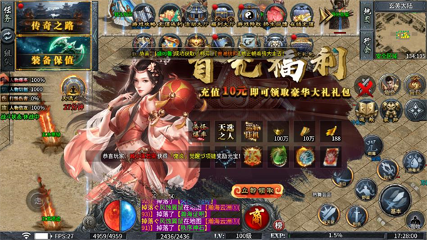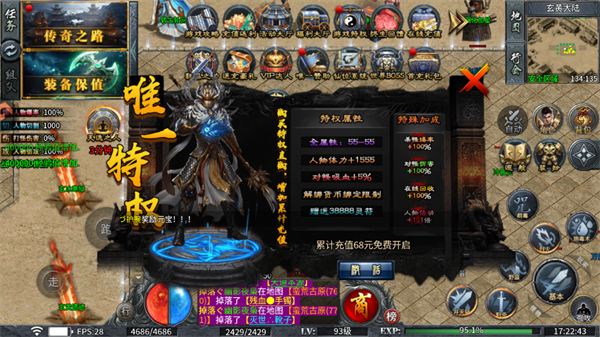 4、【土豪起步】:在线充值直接拉满(散人玩家可通过时间,打代市购买)获得降魔神装,领取冠名获得神技:全屏吸怪,直接开启飞飞跃感游戏体验。