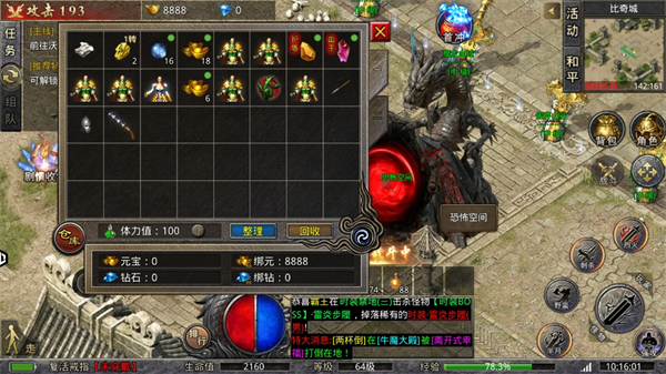 挑战高难活动:随着游戏进程,玩家可以参与沙城争霸等激烈的多人竞技活动。在这些活动中,你将有机会获得顶级装备和珍稀道具,展示你的实力,并提高自己的知名度与影响力。