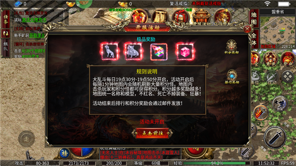 活动开启后每隔1分钟地图内会随机刷新大量积分怪。地图内击杀玩家和积分怪都可获得积分。积分越多奖励越多!地图统一名称和模型,不红名、死亡不掉装备、狂暴!