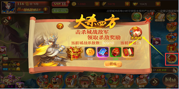 2、根据参战玩家的杀敌数量对玩家发放单人奖励,奖励资源为:军资、功勋、铜钱、主角经验。