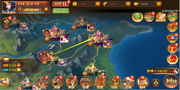 4、攻打城池前需探索开通道路,每个军团旗帜独特,欲插满神州,需步步为营。