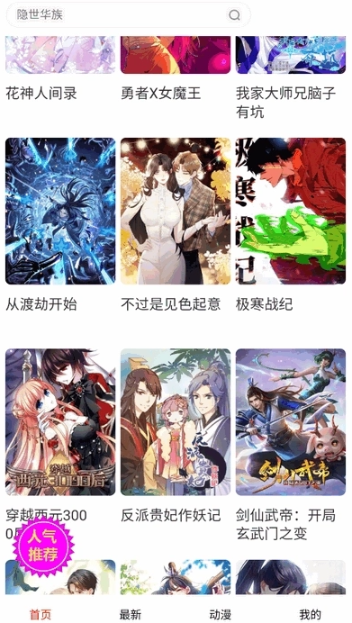 2、进入漫画首页后可以看到不同的漫画资源推荐。