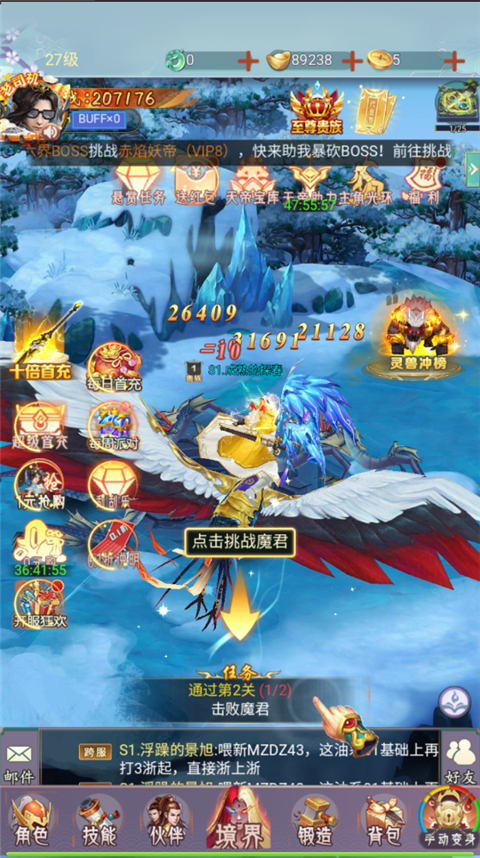 4、游戏玩法多样:游戏具有丰富的PVE和PVP游戏玩法,包括荒野战场的跨服务器战斗、世界boss等,以满足玩家不同的游戏需求。