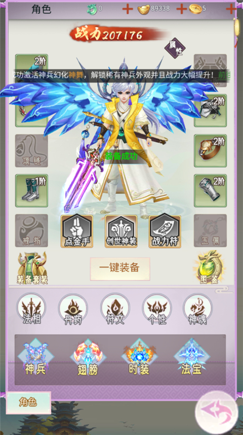 4、有了装备即刻前往角色进行装备。