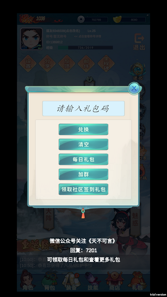 5、在游戏场景中找到礼包入口并点击,即可进入兑换界面。输入你获得的礼包码,点击“兑换”按钮,就能领取相应的奖励。