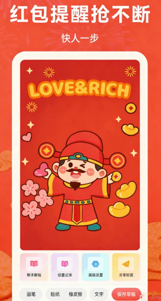 强大的DIY功能。应用内置数百款精美模板,涵盖传统中国风、现代简约风、卡通可爱风等多种风格。用户可以自由添加文字、贴纸、滤镜,甚至上传个人照片,创造专属红包封面。特别值得一提的是,应用还提供AI智能文案推荐,根据收件人关系和节日场景,生成暖心贺词,让每一份祝福都直击人心。