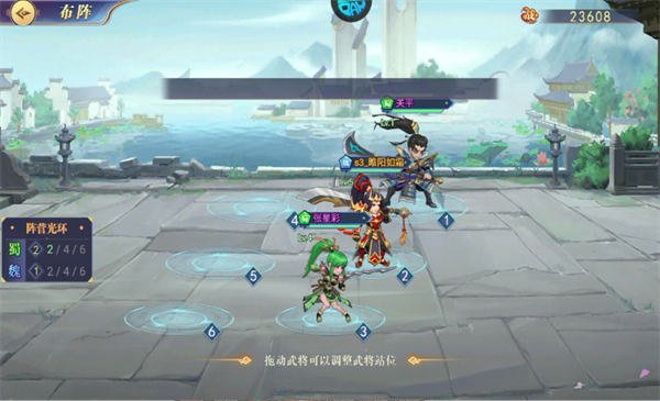 2、战斗开始前,玩家需要合理布置阵容,通过拖动武将图标可以自由调整每位武将的站位。