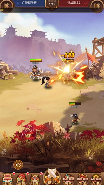 5、随着战力不断增强,通关效率也将大幅提升,在顺利击败敌人的同时,还能赢取丰厚奖励,逐步实现统一三国的目标。