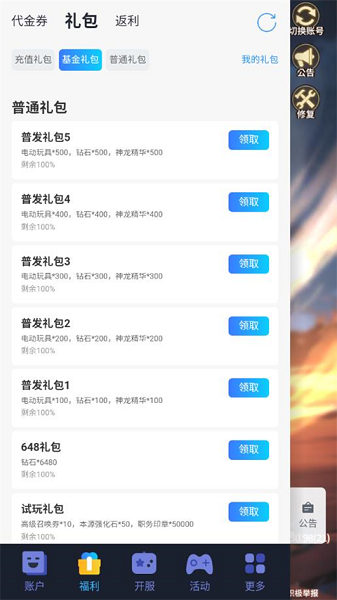 1、打开《出击英雄岛》进入游戏主界面后,点击首页的悬浮球图标,即可领取礼包兑换码。