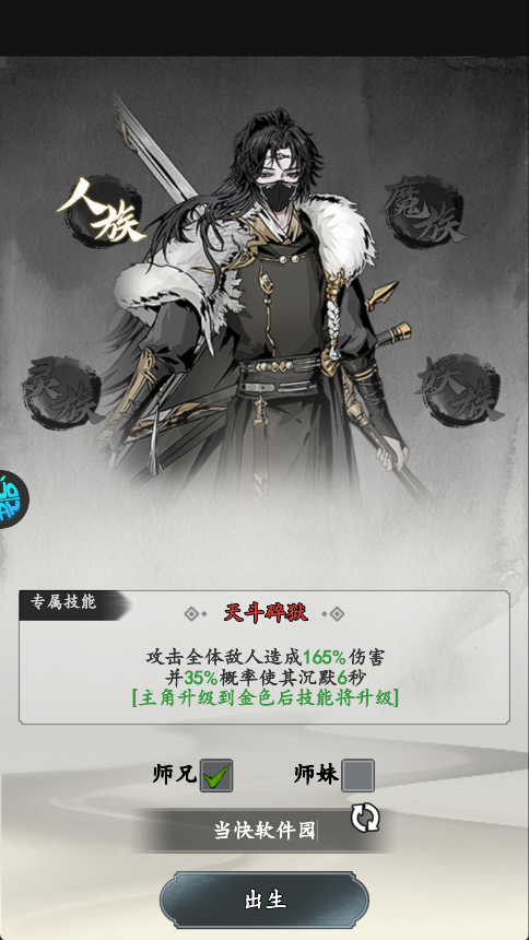 2、进入后请选择你喜欢的角色,开启专属修行之路。