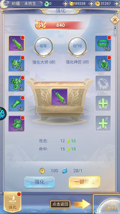 8、我们也可以对装备、宝物进行强化,提升各方面的属性。