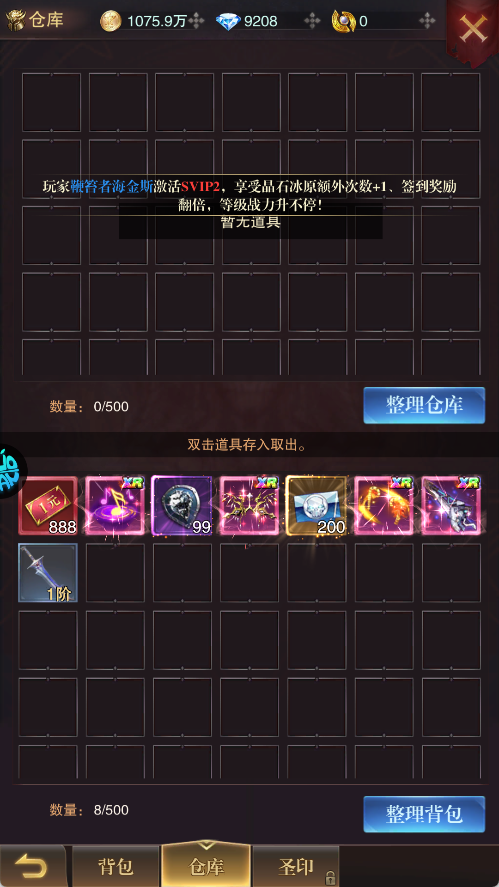 2、VIP888:钻石200、灵兽升级石5、金币*500000。