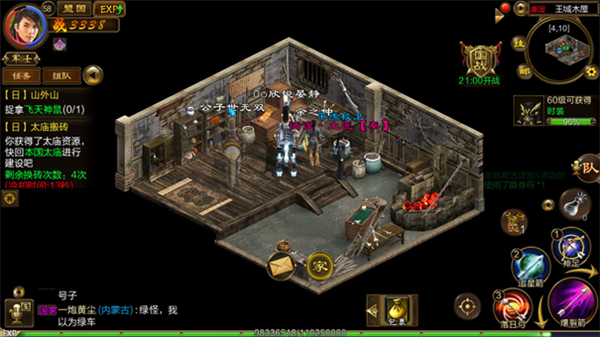 火力太猛扛不住了怎么办?那就避其锋芒吧!你一定会发现太庙的东北方有一个传送点,没错,那就是传说中的小木屋,你点进去就会传送到小木屋,就会进入安全地带,等待换砖冷却时间,这种办法是最安全而且减少原地银两的方法!