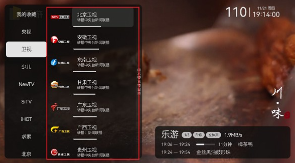 3、卫视:所有的卫视频道这里都有。