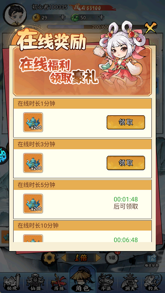 在线时长奖励需要按时领取,特别是1分钟、3分钟这类短时奖励,可以快速积累资源。不必等到所有时长奖励都集齐再领,以免遗漏造成收益损失。