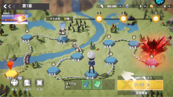 按主线关卡的指引推进,完成关卡获取经验、装备与招募券,解锁更多玩法。