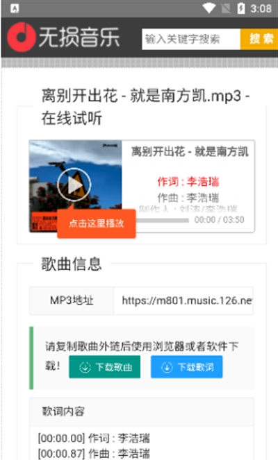 2、支持在线搜索和下载歌曲,方便用户获取自己喜欢的音乐。