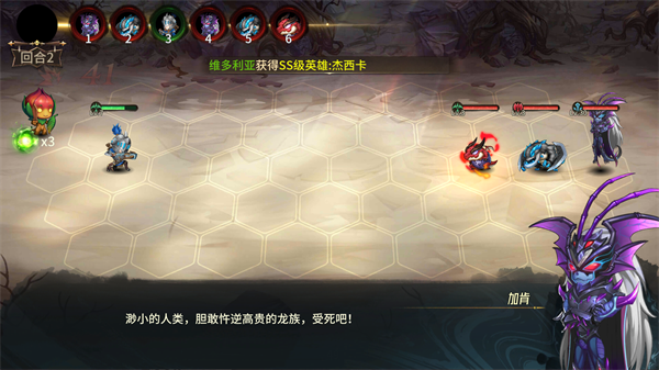 1、灵活调整英雄在六边形网格战场上的位置,利用火药桶等场景机制改变战斗进程,实现智取胜的战术目标。