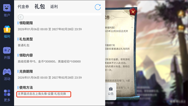 神级勇士兑换码领取方法