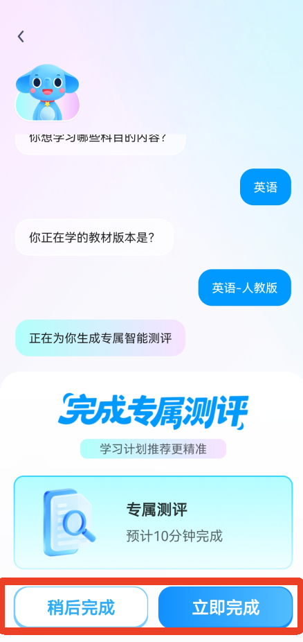2、回答问题后,您可以进行独家评估,也可以选择稍后完成。