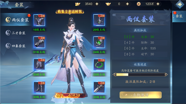相关套装收集2件可增加30攻击属性,4件可增加40防御属性,6件可增加535生命属性,8件增加30破甲属性。