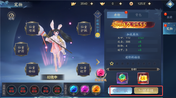 宠物与坐骑一样,升级可提升相关属性,也可接送新的宠物技能。