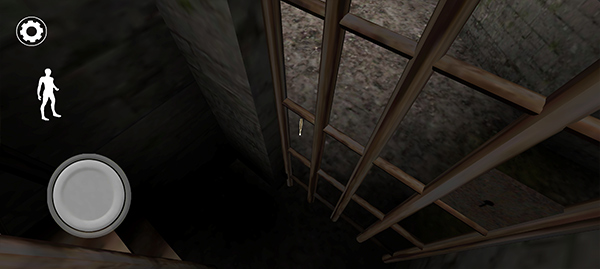 3、滑动角色移动到这个铁门前,在门外有一把开锁器我们要拾取它。