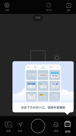 2、进入相机应用程序主页后,您第一次打开它时,系统会提示您水印模板的位置。点击它。